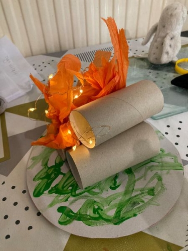 We love simple Bonfire night crafts at home including this simple Bonfire centrepiece made with toilet roll tubes and some tissue paper. And a simple rocket. The wonderden have a great Bonfire inspired free downloable activity pack here.