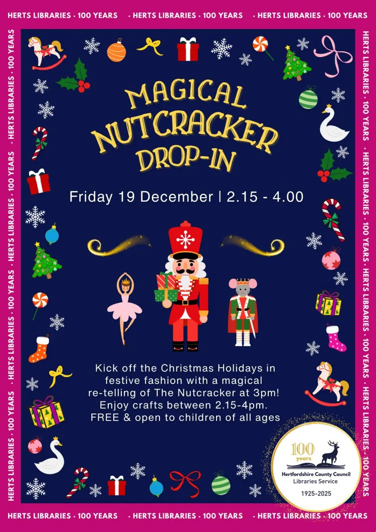 Kick off the Christmas holidays with our Magical Nutcracker Drop-in, bursting with festive fun and a special Nutcracker craft! Free and children of all ages welcome.