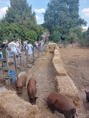 We have a large garden where kids have space to play, along with games to keep them entertained. We also have a pig farm, where customers are encouraged to feed the pigs.