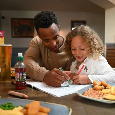 Here at the Two Chimneys, we offer complimentary activity packs to entertain the little ones, plus we have a large pub garden to soak up the sun, while the kids have a run-a-round.