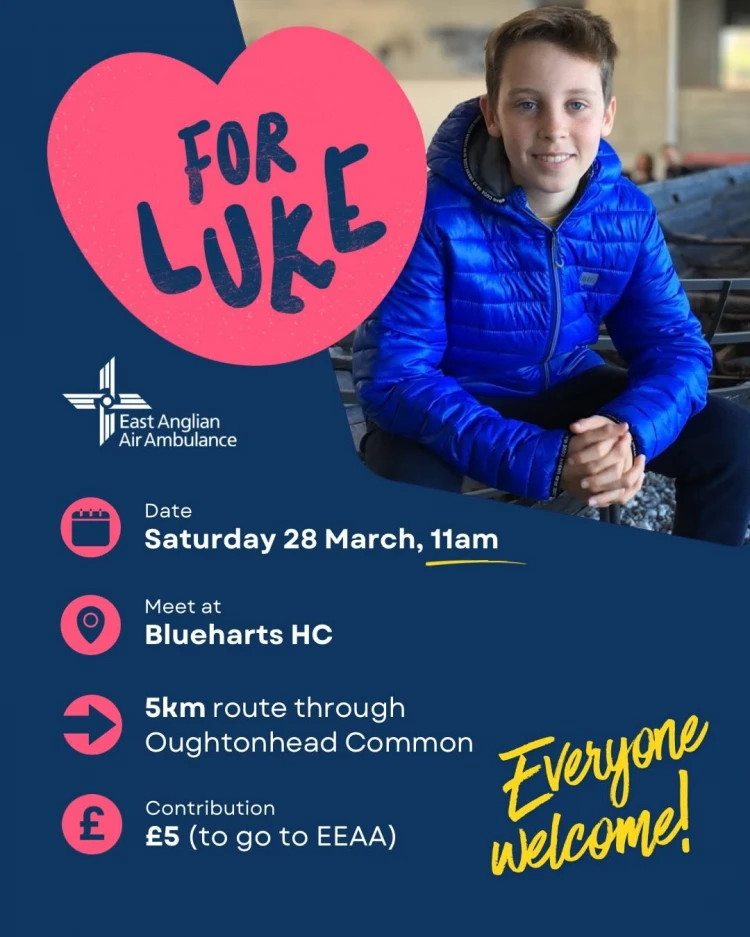 On Saturday 28 March, our Blueharts community will come together to remember our young Bluehart, Luke Hobson, and raise funds for the @eastangliairamb .