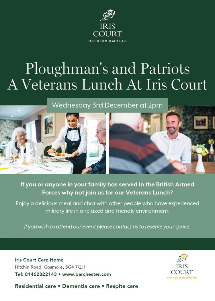 Join us at Iris Court as we proudly host our Ploughman's and Patriots, a heartfelt lunch dedicated to honouring the incredible veterans within our community.