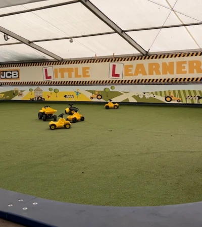 After they’d run off some steam, we headed across to the JCB Young Drivers indoor area, where there are different sized JCB-themed ride-ons and a large track for them to “drive” around.