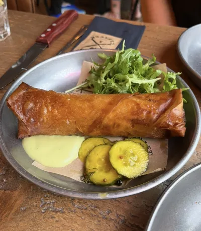 Brisket Cheesesteak Cigar: This dish features smoked beef brisket, bell pepper, and American cheese, wrapped in a crispy egg roll, accompanied by a zesty Peruvian Aji Verde sauce. The combination of flavours and textures was delicious and my husband was a huge fan of this!