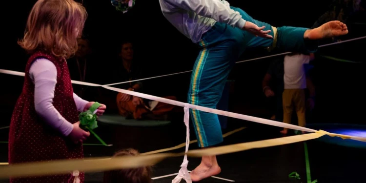 The Sticky Dance is an interactive, engaging and colourful performance installation for children and their families.