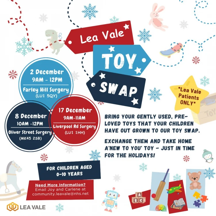 Bring your gently used, pre-loved toys that your children have out grown to our toy swap. Exchange them and take home a 'new to you' toy - just in time for the holidays!