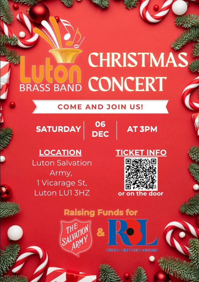 The concert takes place at 3pm, Saturday 6 December. The Luton Salvation Army Hall. 1 Vicarage St. LU1 3HZ.