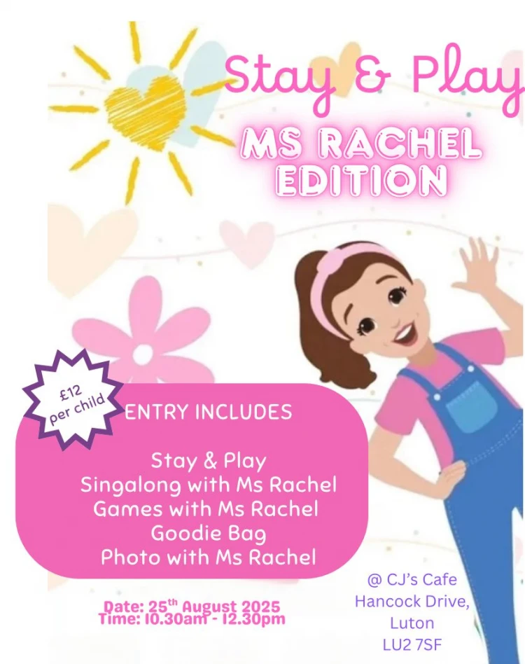 Join Bounce & Bubble Hire for a special Stay & Play session with a visit from Ms Rachel!