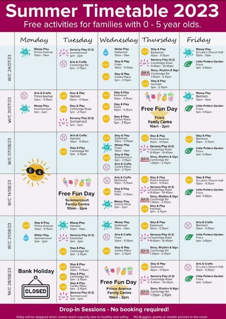 ☀�13. Southend Family centres have a timetable of FREE activities over summer. Click here for activities for Under 1's only and here for 0-5 years.