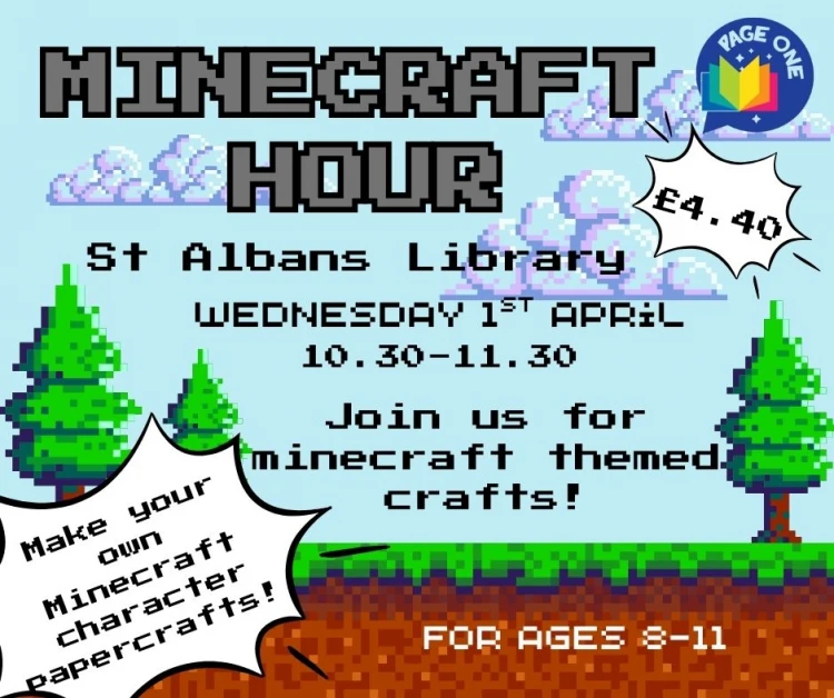 If you have an avid mine-crafter at home this is the perfect Page One event for them, with a variety of activities including crafting their own Minecraft figure from paper. Join us this Easter holiday for a whole hour of Minecraft fun.