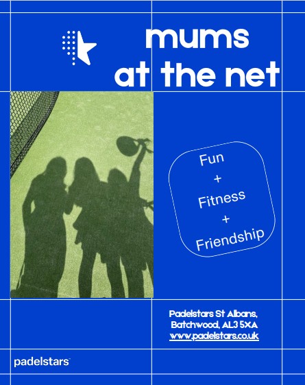Padelstars St Albans (at Batchwood) are offering sessions for mums, during school hours and in school term times. This side of half term, there are three 'Intro to Padel' sessions (26/1, 2/2, 9/2); after half term there are four 'Social Mix Ins' (23/2, 2/3, 9/3, 16/3); and on the last week of term (23rd March) a tournament.