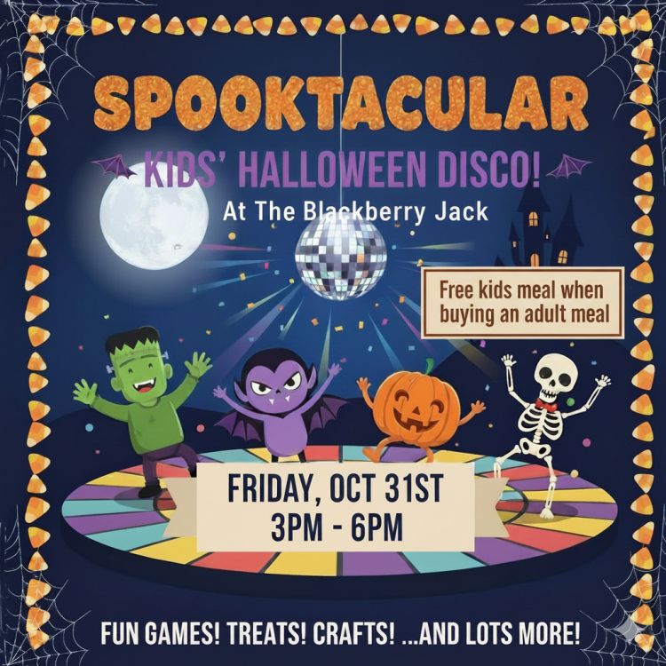 Come down to the Blackberry Jack for a spooooooky Halloween Disco. With terrifying tunes, monstrous games, creepy crafts and terrifying (glitter) tattoos, this event is sure to be enjoyed by all!